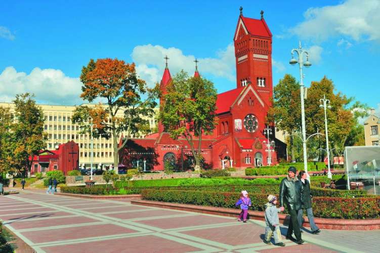 Известный жителям Минска как «Красный костел», этот храм в неоготическом стиле стал одним из главных символов города. Костел был построен в 1908–1910 годах на средства аристократа Эдварда Войниловича и его жены Олимпиады и был назван именами святых Симеона и Елены в память об их безвременно ушедших детях — 12-летнем сыне Сымоне, последней ветви старинного рода, и любимой дочери Алене, не дожившей одного дня до своего 19-летия. Большая башня костела символизирует безутешную скорбь семьи, в то время как память о сыне и дочери Войниловичей нашла свое воплощение в двух башнях меньшего размера. Существует легенда о том, что незадолго до своей кончины Алена увидела во сне косте